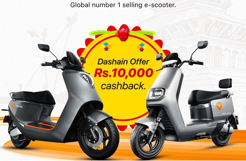 कम्पनीले आफ्ना लोकप्रिय स्कुटरहरू ई८एस प्रो, जी६ र एम६ लगायत मोडलमा १० हजार छुट दिने योजना ल्याएको हो । यो विशेष छुट सीमित समयको लागि मात्र उपलब्ध हुने कम्पनीले जनाएको छ ।