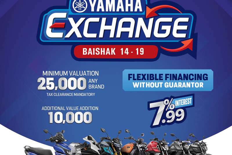 यामाहा ब्लु फेस्टको सफलतापछि कम्पनीले फेरि एकपटक ग्राहकहरूलाई एक्सचेन्ज अवसर प्रदान गरेको हो । अफर अन्तर्गत जुनसुकै ब्रान्डको पुरानो सवारीसाधनमा न्यूनतम २५ हजारको भ्यालुएसन हुनेछ । एक्सचेन्ज भ्यालु अझ बढाउन थप १० हजारको अतिरिक्त भ्यालुएसन समेत प्रदान गरिने कम्पनीले जनाएको छ ।
