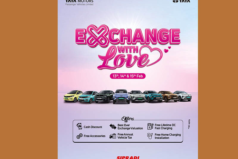 ‘एक्सचेन्ज विथ लभ’ योजना अन्तर्गत गाडी खरिद गर्ने ग्राहकहरुले आकर्षक छुट, आकर्षक एक्सचेन्ज बोनस, एसेसरिज, सिप्रदीको चार्जिङ नेटवर्कमा लाइफटाइम निःशुल्क चार्जिङ र १ वर्षको वार्षिक सवारी कर, निःशुल्क चार्जिङ बक्स जडान सहित हरेक बुकिङमा आकर्षक उपहारहरु समेत प्राप्त गर्न सक्ने कम्पनीले जनाएको छ । कम्पनीका अनुसार सो अवसरमा ग्राहकहरुले टाटा मोटर्सको नयाँ तथा अत्याधुनिक डिजाइनका उत्पादनहरु अवलोकन तथा टेष्ट ड्राइभ गर्न सक्नेछन् ।